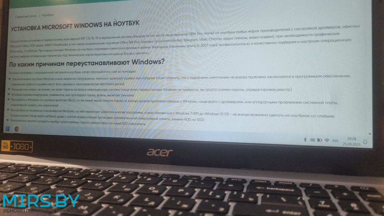 Стоимость установки операционной системы Windows 11 профессиональная на новый классический ноутбук Acer Aspire 3 A315-44P-R3X3 указана на дату выполнения заказа, а именно осень 2025 года.
