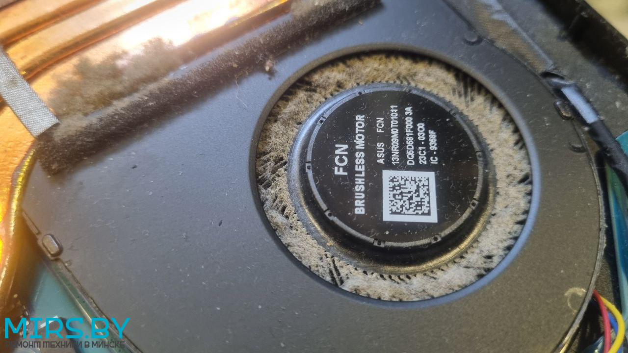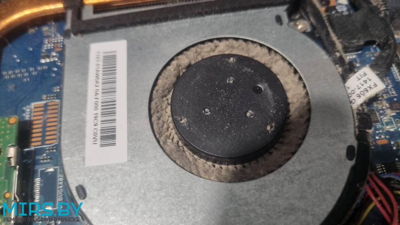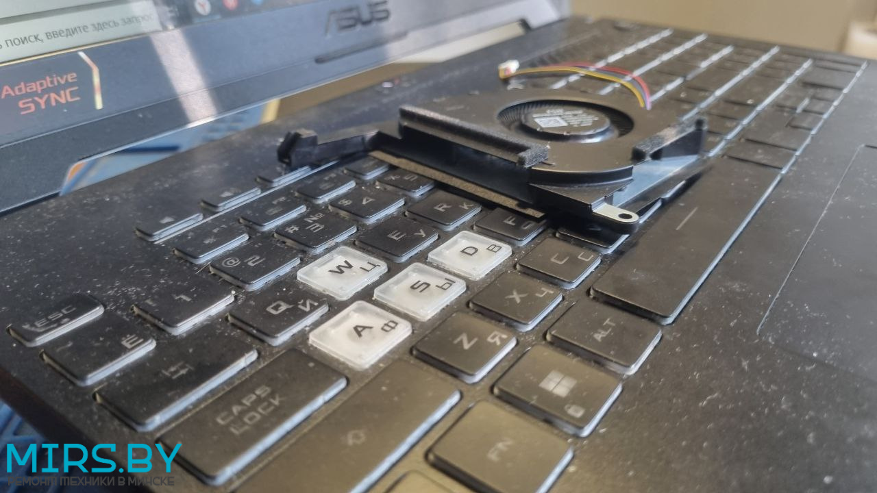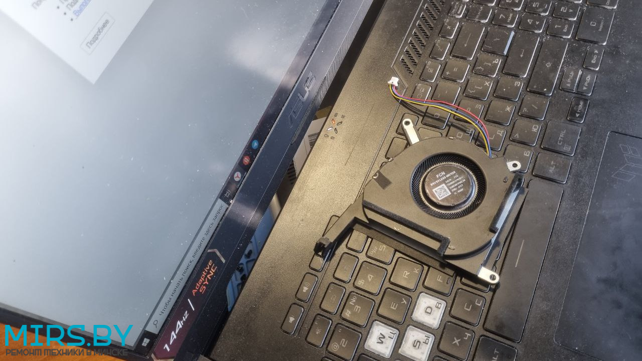 - Перегрев: ноутбук ASUS TUF Gaming F15 FX507Z тормозит, throttling, греется, зависает - решается чисткой от пыли с заменой термопасты, но в запущенных случаях могут быть проблемы и с процессором и с видеочипом, в нашем случае не выжил только один из двух вентиляторов.