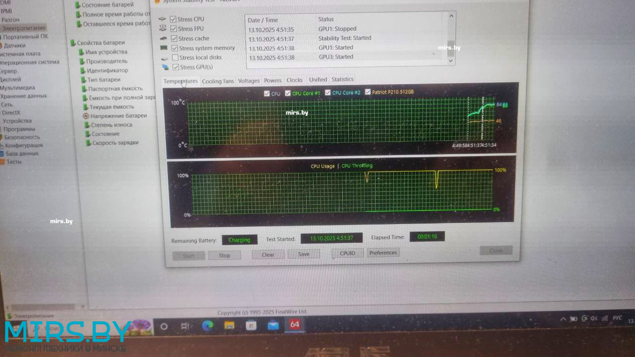 После разборки ноутбука ASUS ZenBook UX32 увидели заклинивший кулер, а также вздутую аккумуляторную батарею. Поиски кулера на просторах не только Беларуси, но и всего СНГ ни к чему не привели (левый, маркировка kdb05105hb-cb48, правый был в Беларуси у поставщика). Единственным возможным вариантом являлся заказ нового вентилятора, на свой страх и риск на Алиэкспрес, или же попытка отремонтировать кулер (благо он оказался разборным). Прочистили механические части, смазали, собрали кулер (тесты показали, что кулер работает без шума, не заклинивает и справляется со своей основной задачей, температуры стресс теста Аиды на фотографиях), заменили термопасту на чипах, а также заменили неисправную батарею на новую оригинальную C23-UX32. Хочется отметить, что ремонт кулера в ноутбуке возможен далеко не во всех случаях, более того, только если кулер разборный - мы рекомендуем менять на новый, но в редких случаях, когда кулеры только под заказ, с доставкой от месяца, ремонтируем при возможности.