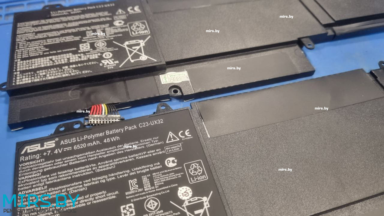- Проблемы с аккумулятором (наш случай): какой качественной не была бы батарея в ноутбуке, но выжить 13 лет невозможно, поэтому приходится менять на новую АКБ (установлена C23-UX32).