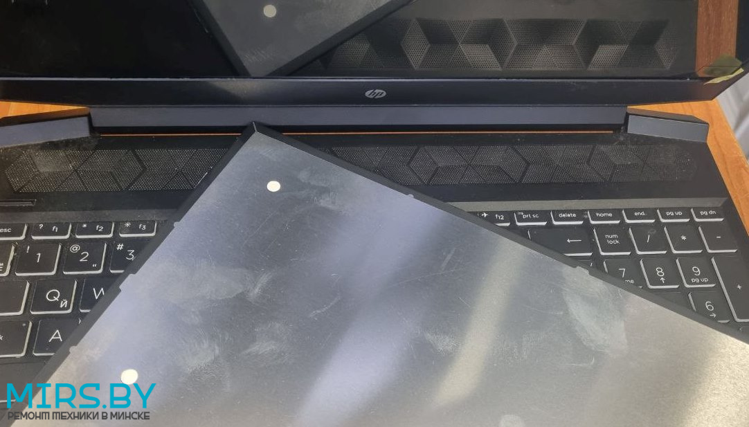 В нашем конкретном случае ноутбук HP Pavilion Gaming 15-ec1038ur упал и разбился экран, других повреждений в ходе диагностики не обнаружено. Демонтировали разбитую матрицу, очистили рамку и заднюю крышку от клейкой основы, проклеили новую матрицу, провели тесты.