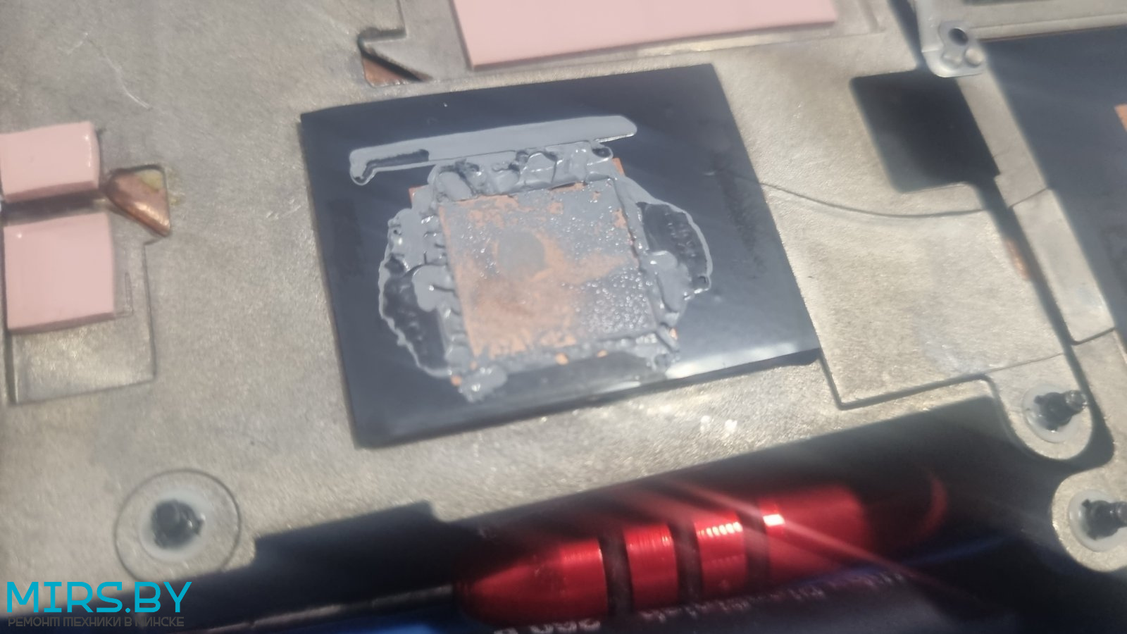 В данном случае у клиента ноутбук стал сильно греться и тормозить как в играх, так при обработке видео. Разобрав ноутбук обнаружено, что термопаста засохла, в следствии чего система охлаждения работала плохо и нестабильно. Заменили термопасту и термопрокладки в ноутбуке и работа игрового устройства нормализовалась