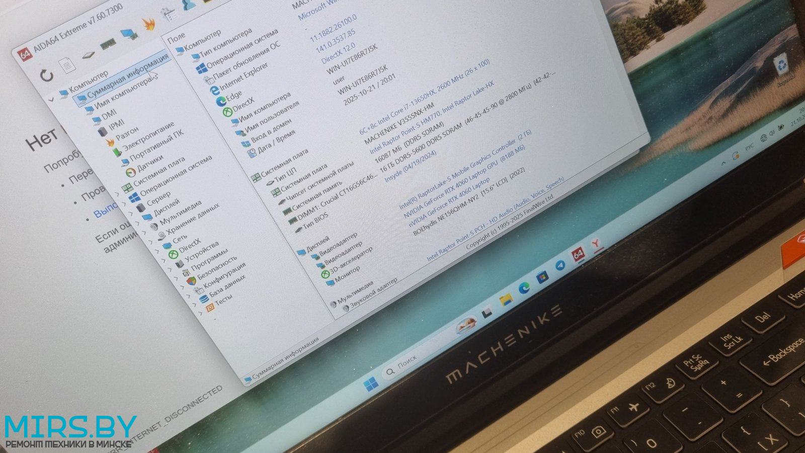 Игровые ноутбуки Machenike Light 15 Pro L15P все чаще появляются в мастерских столицы Беларуси, так все больше идет рекламы в сети Интернет данной марки, а молодое поколение склонно верить рекламе, к этому добавим и сравнительно невысокую стоимость китайских игровых аппаратов, по сравнению с флагманами рынка при тех же заявленных технических характеристиках (за 4000 белорусских рублей клиент получает хорошую IPS матрицу 15.6" с разрешением 2560 x 1440 и частотой 165 Гц, мощный процессор Intel Core i7 13650HX, свежую оперативную память 16 ГБ DDR5 (Crucial от Микрон одной планкой, что дает возможность апргейдить лаптоп добавив просто вторую во второй слот до 32 ГБ, кстати сами ставим оперативную память и SSD от данного производителя, подробнее про апгрейд ноутбука почитайте в статье по ссылке), неплохой SSD 1024 ГБ, мощную видеокарту NVIDIA GeForce RTX 4070 8ГБ). Официального сервисного центра Машенике в Беларуси на момент обслуживания ноутбука нет (есть в России, Малайзии и на Филиппинах), поэтому некоторые запасные части проблематично заменить, приходится заказывать из Китая.