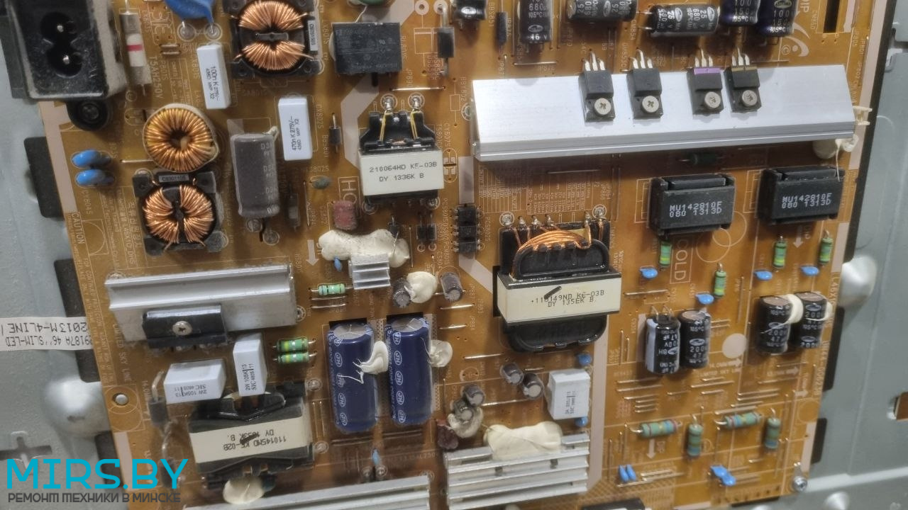 В данном случае имеем стандартную неисправность: после многолетней работы, телевизор перестал включаться. Разобрали телевизор, определили выход из строя блока питания, заменили неисправный блок на оригинальный BN44-00623D с гарантией 4 месяца.